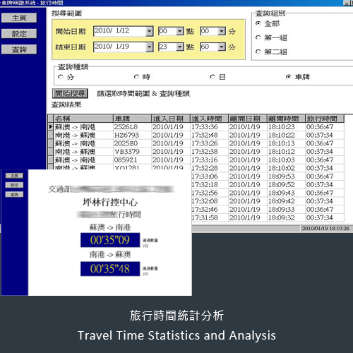 此外,系統還支援整合RFID技術的擴充,實現多因子辨識比對和資訊管理功能。它可應用於評估區域道路的旅行時間偵測統計提供用路人交通路況的資訊,以及在結合動態市區道路上的紅綠燈號誌控制系統進行區域路段動態號誌建置效益評量應用。同時它還可應用於警政單位的車輛通行紀錄調閱查詢與結合電子地圖進行軌跡追蹤等應用場域建置。