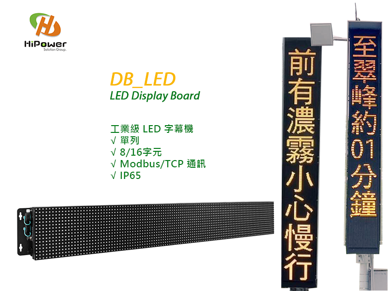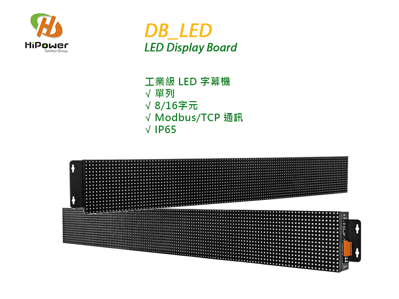 單列, 8/16字元, 工業級 LED 字幕機, Modbus/TCP 通訊, IP65
