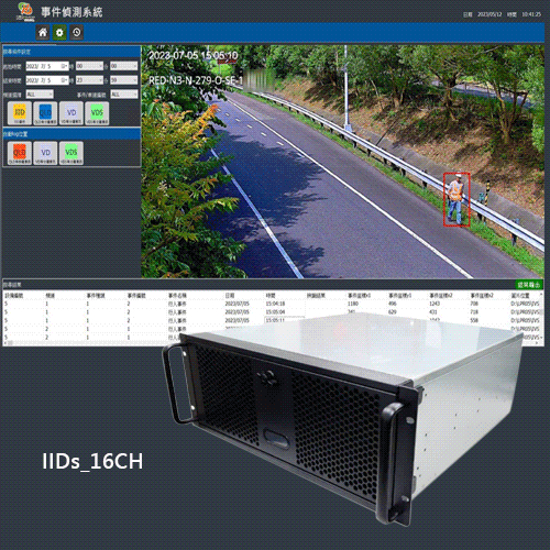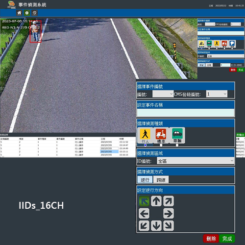 回報事件類別、發生時間、發生車道、發生車種、發生攝影機編號。回報即時事件影像畫面(畫面上會標示出事件位置)。