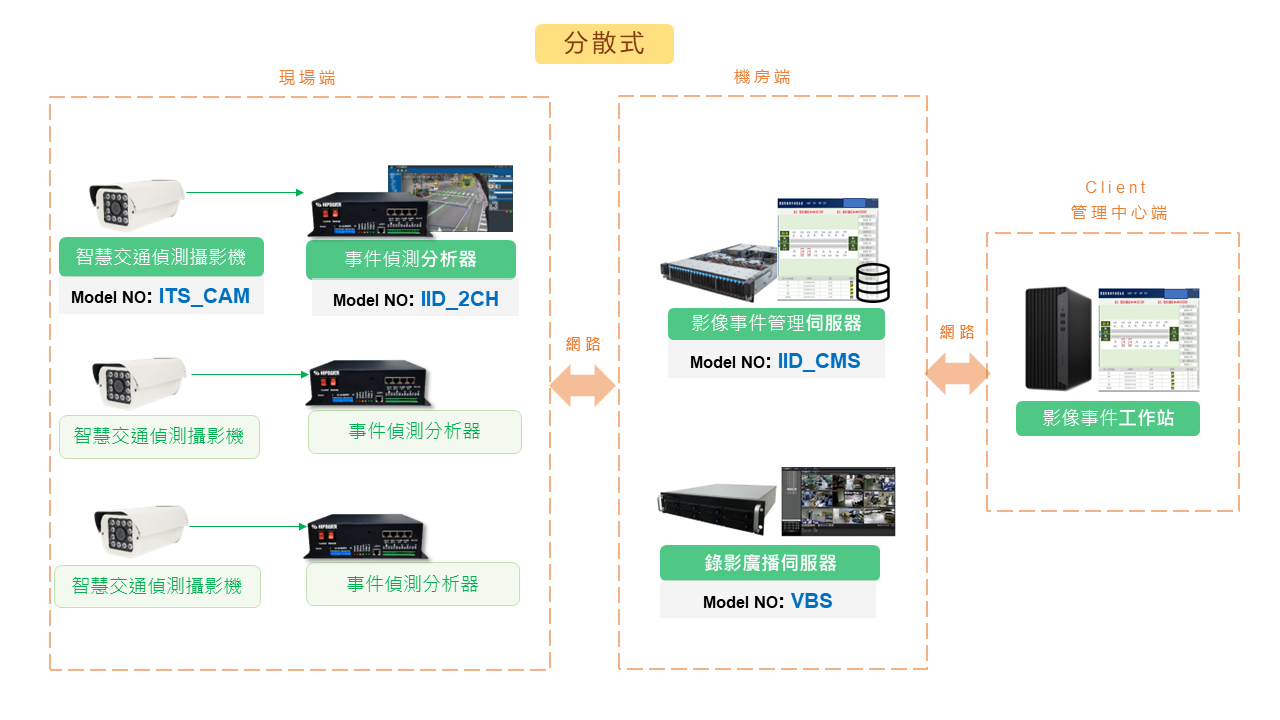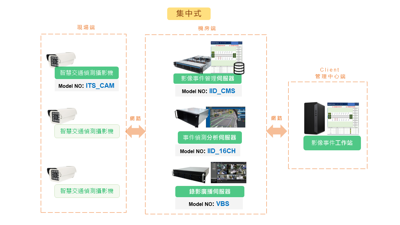 本系統設備可以進行搭配HIPOWER 的攝影機(槍型/全景)或是熱感攝影機thermal camera進行因應各種路口或是環境監測建置應用,同時搭配中心系統管理平台iCMS進行接收管理多組IIDs事件偵測器管理資訊。