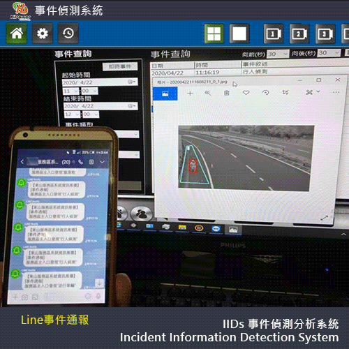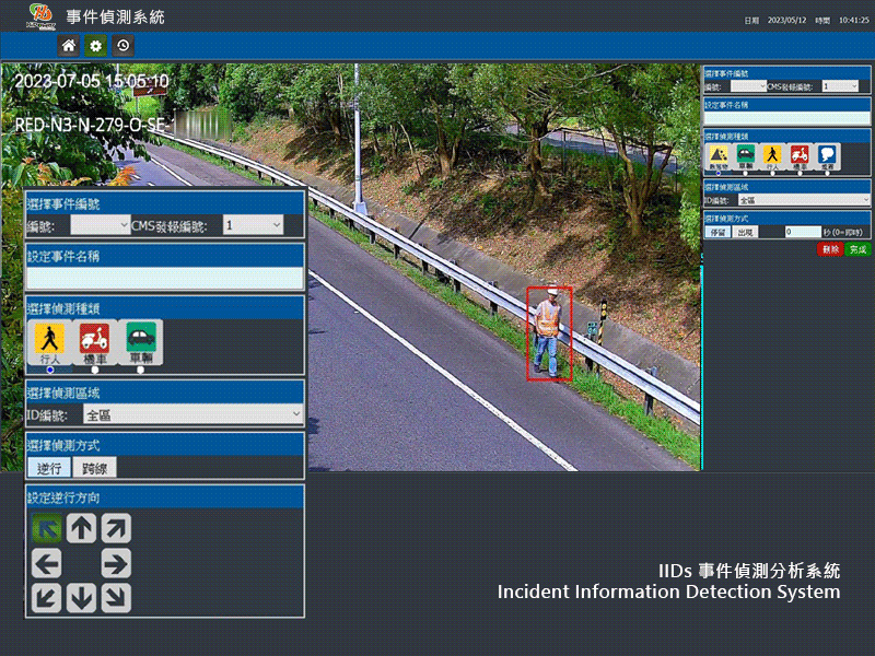 採用攝影機影像串流做為事件偵測來源,經系統設定進行物件種類偵測和行爲模式判斷,於監測範圍內偵測行人逗留/車輛停等/車輛逆行駕駛/違規跨線/煙霧/散落異物/違規機車..等異常事件等行為偵測。同時系統內建事件錄影功能,可儲存針對事件前及事件後進行事件錄影存擋,並結合事件管理系統CMS進行事件儲存調閱查詢管理整合應用。