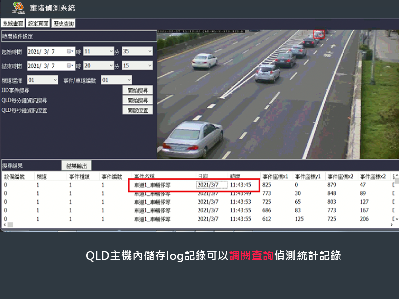 能即時提供偵測區內車輛停等事件並回報中央電腦車輛停等事件。