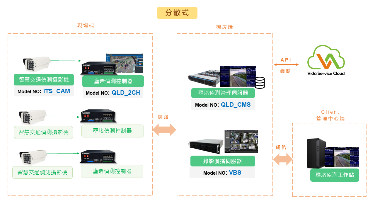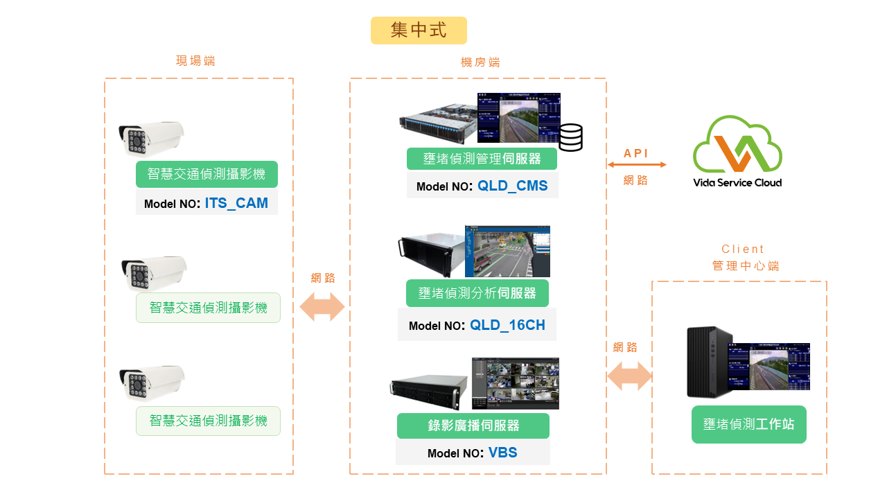 系統設備依照硬體規格可以區分爲現場端1路偵測以及4路/8路中心端進行偵測管理