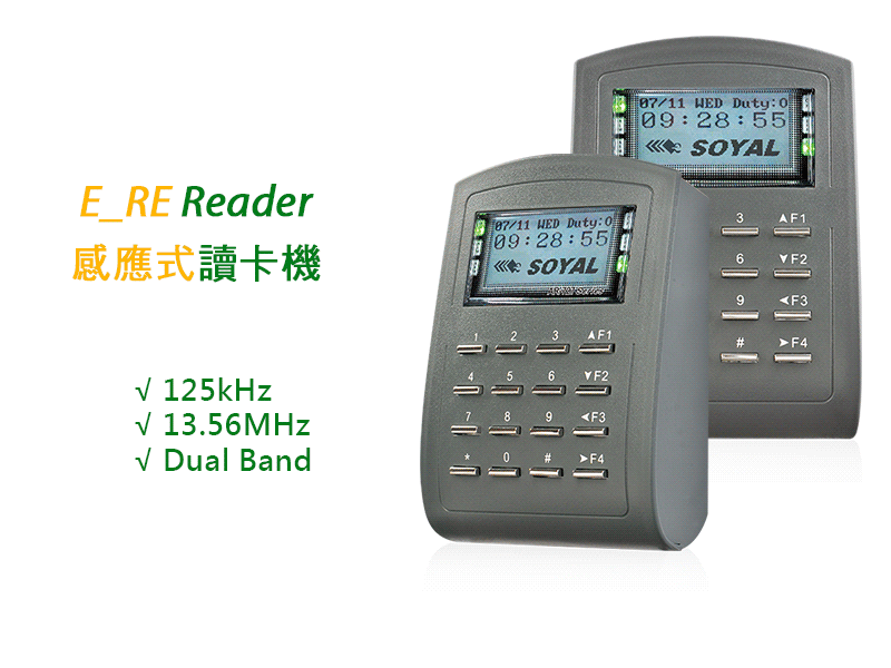| 125Khz:5-15 cm ,13.56Mhz:2-5 cm ,Dual Band: 2-15 cm | 24~64 Bit (可自行設定) | 維根 26~64 | 唯根 Data 0, Data 1與警戒輸出、求援輸出共用 | 門鎖繼電器 X1,開集極 X1 | 繼電器 X1 | 唯根Data 0 輸入 X1,唯根Data 1 輸入 X1,紅色LED輸出 X1,綠色LED輸出 X1,蜂鳴器輸出 X1 | 警戒輸出 X1,數位串列開門訊號 X1,求援輸出 X1 | 微動開關 (1 Form C/ 1000mA / 30VDC) | 9-24VDC | ARM Cortex M3 (32 bits) | 小於5W |