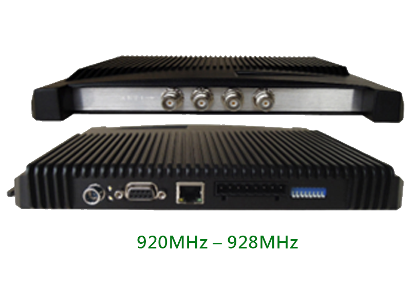 | 空氣冷卻 | 115,200 bps | 2 路輸入光耦合 2 路輸出光耦合 | RS-232 或 TCP/IP | 環境溫度監測、天線連接保護、標籤 RSSI | 1000 張標籤 @ 96 bit EPC | 700 張/秒 | 小於-85 dBm | +/- 0.2dBm | +/- 1dBm |