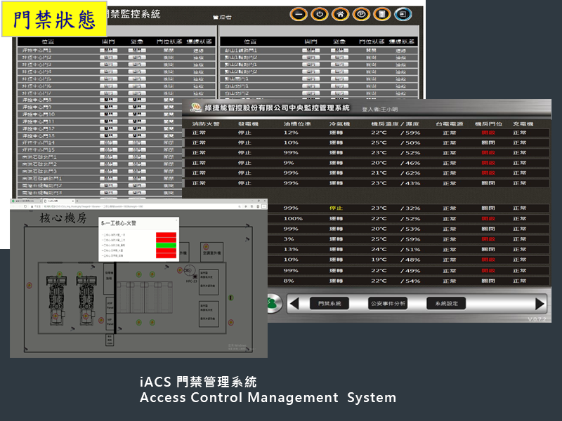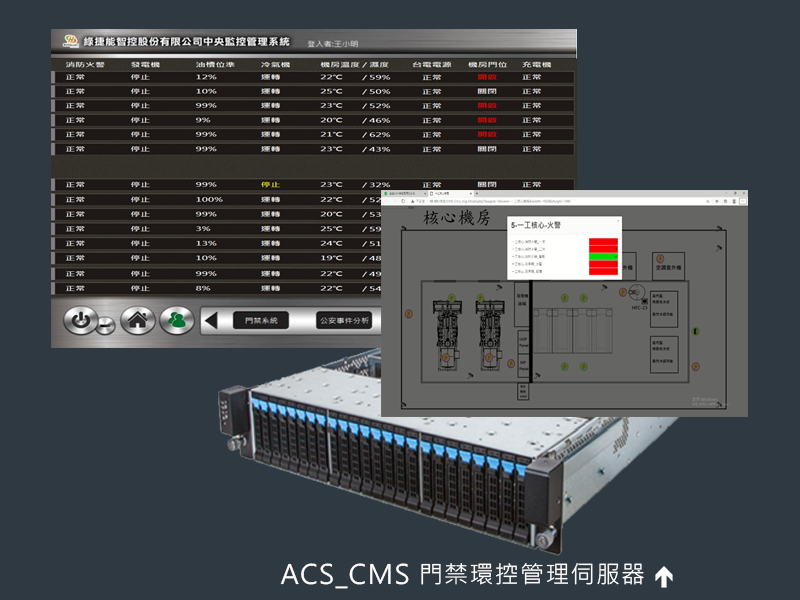 設備運作狀態及溫度、濕度、火警、淹水偵測 等環境狀態