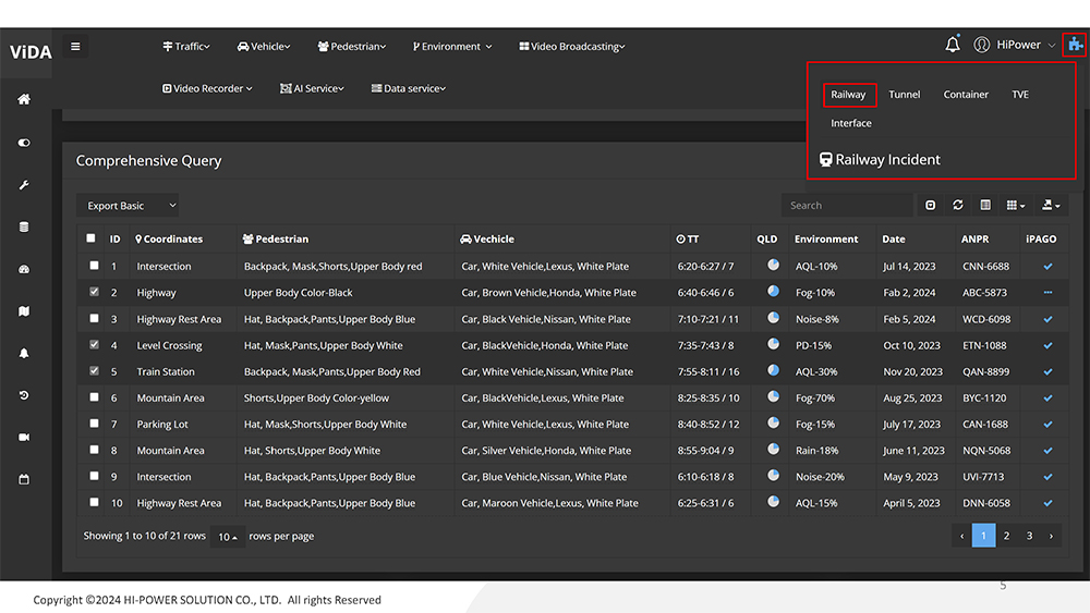 ViDA.ai 運用先進影像分析技術,蒐集車流量、壅塞狀況與違規行為資料。支援功能包含:違規變換車道、逆向行駛、違停偵測、超速監控等,全面強化智慧交通管理。